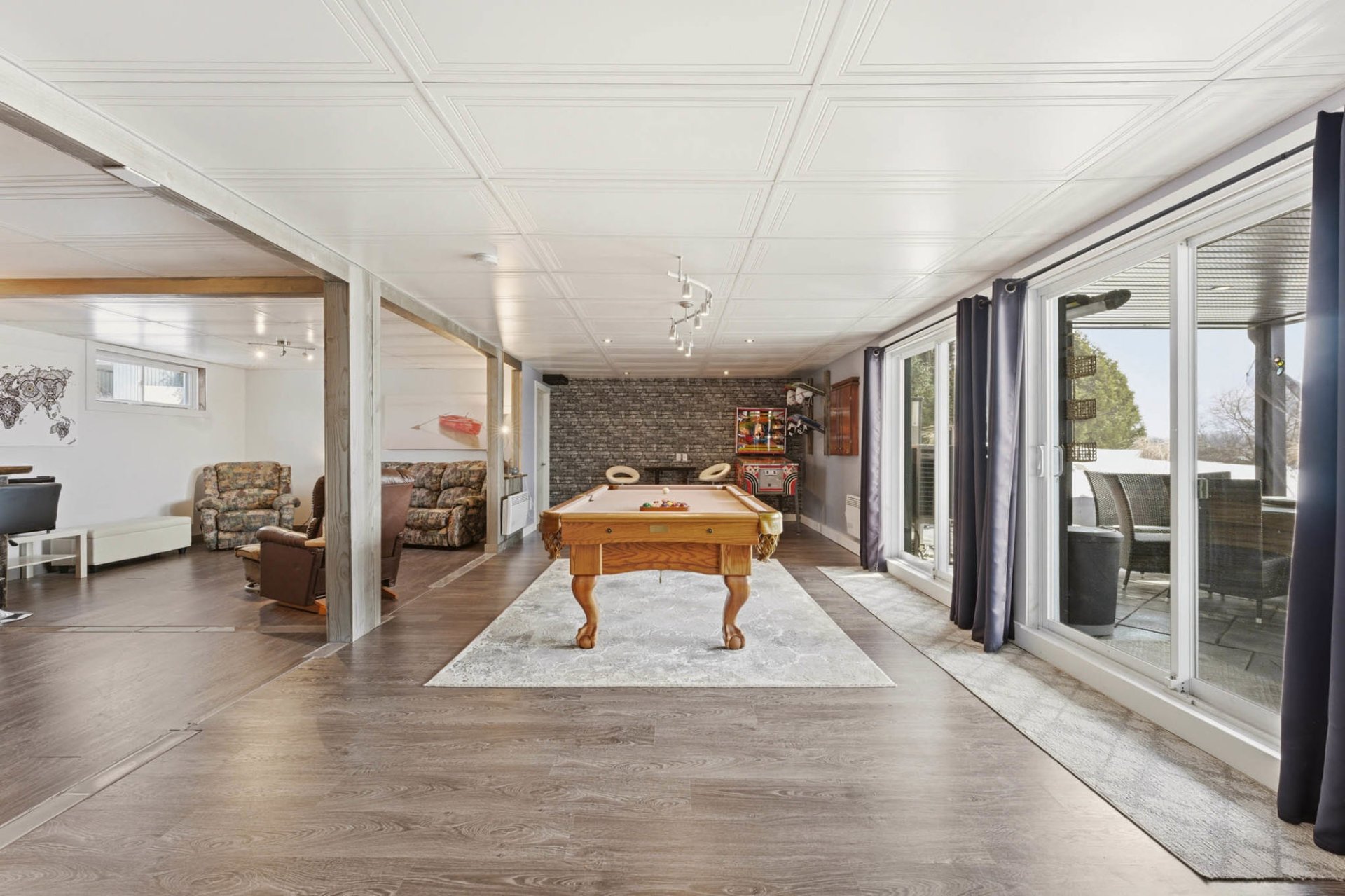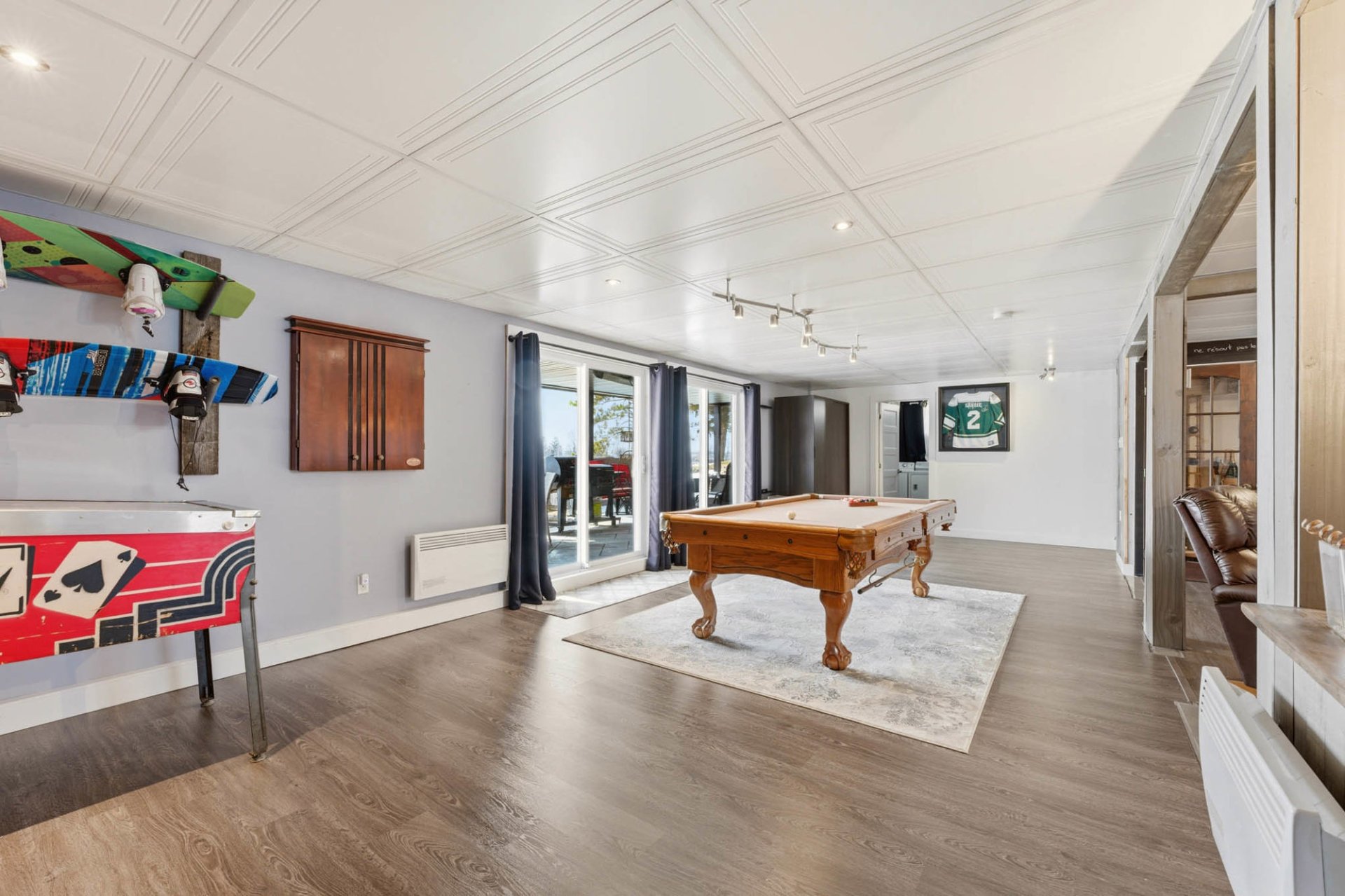 La grande aire ouverte du sous-sol vous propose un espace