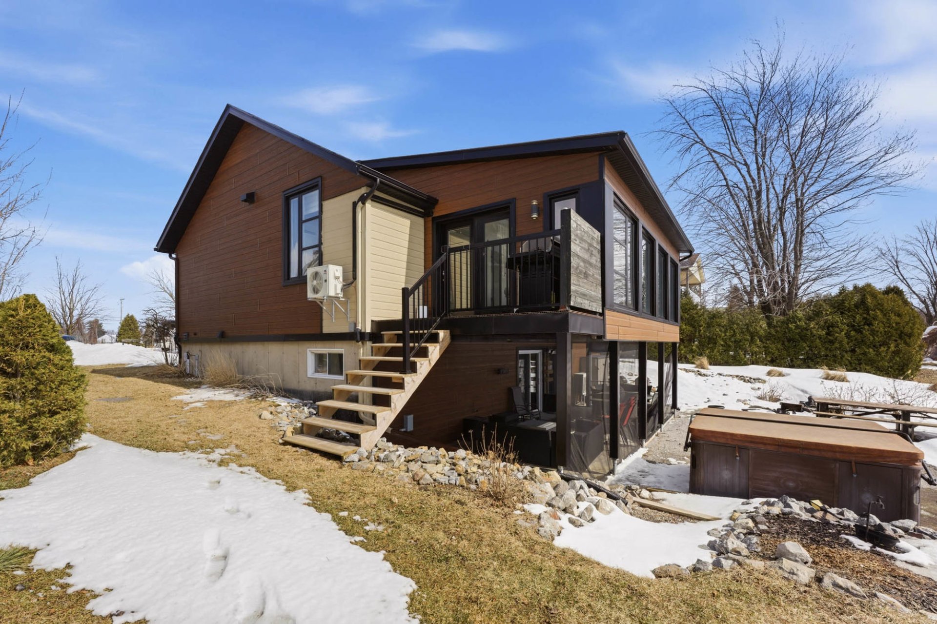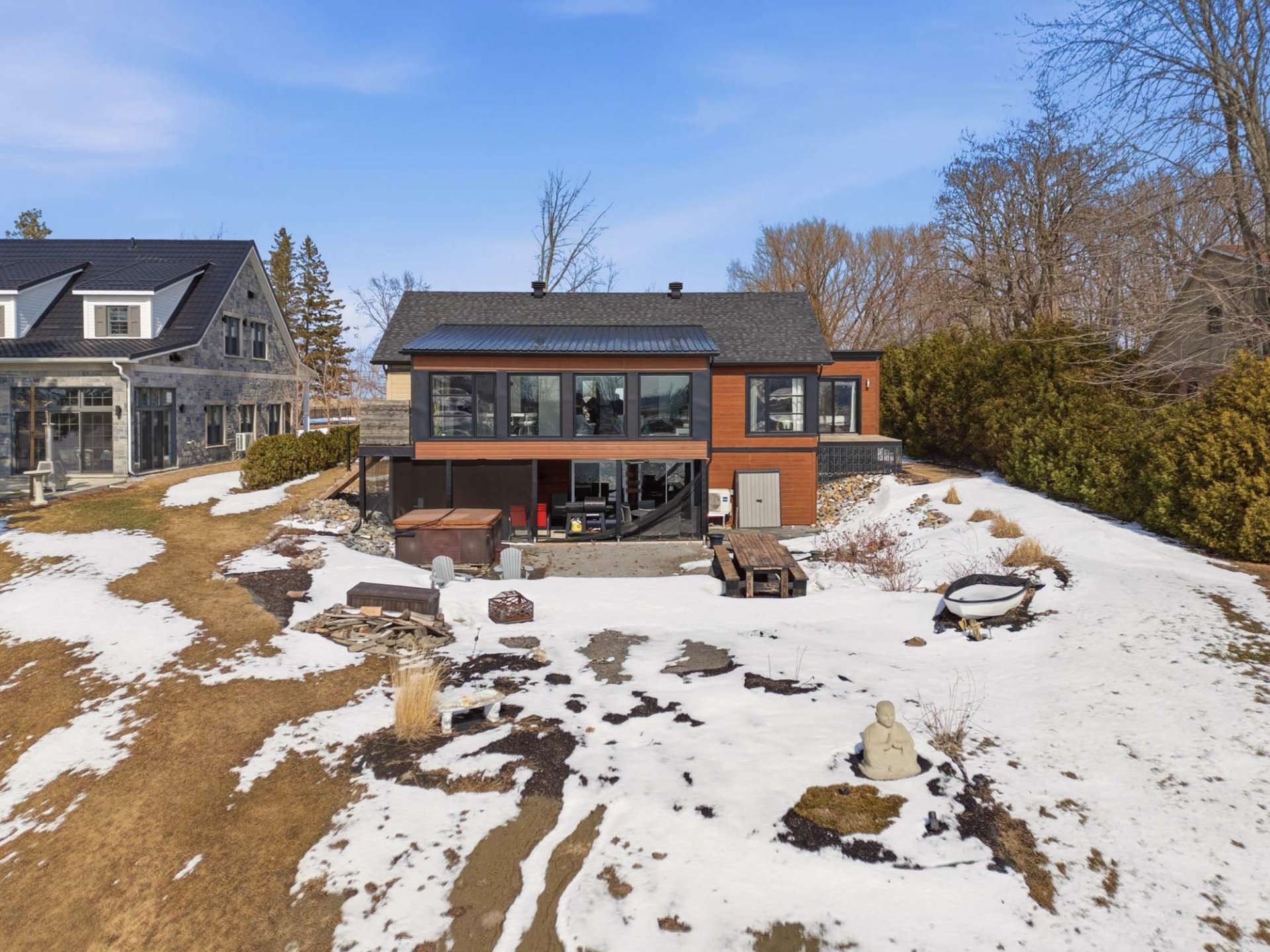 Propriété construite en 2015 offrant un parfait équilibre entre confort moderne et nature, sur un terrain de 34 973 pi². Lumineuse et spacieuse, elle propose 3 chambres (possibilité de 5), un agrandissement avec un toit de style cathédrale et plancher chauffant, ainsi qu'une suite des maîtres avec salle de bain attenante et deux walk-ins. Sous-sol convivial avec bar, cellier, chambre et espace billard. Garage double chauffé avec rangement au deuxième étage. Accès direct à la rivière avec quai -- un cadre de vie unique!