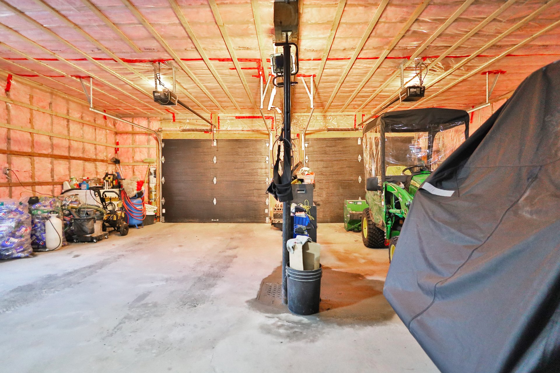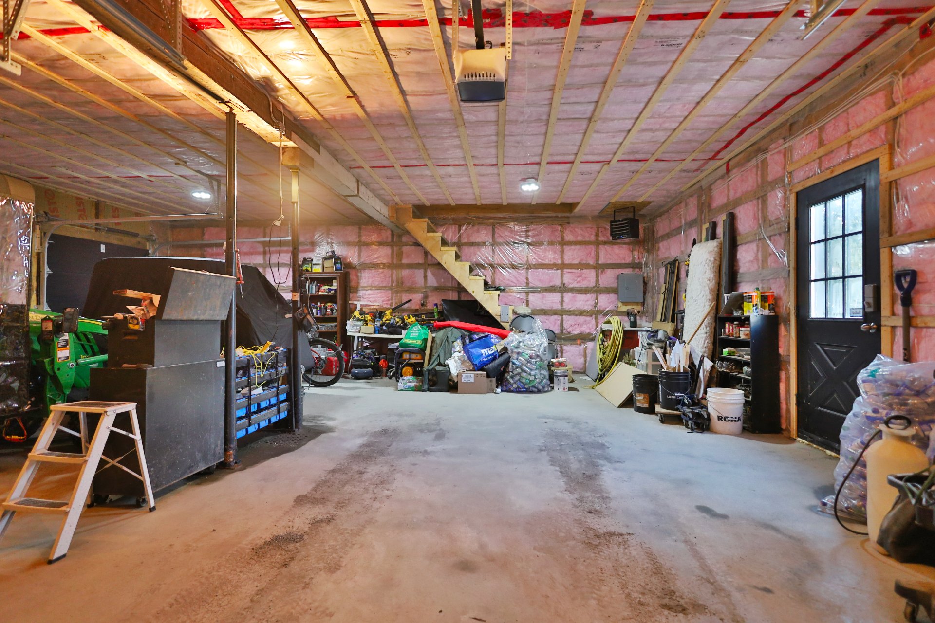 Le grand garage double chauffé avec rangement au deuxième